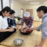 インターンシップ中の大学生やふるさと活性化のメンバーの外前沢地区からの見学者等で楽しくそば打ちをしました。